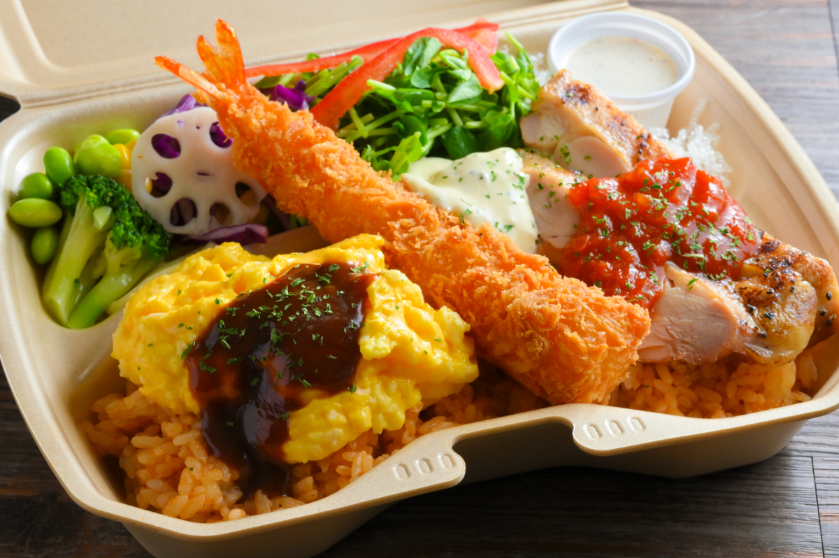 8種野菜のふわとろオムライスとエビフライグリルチキン