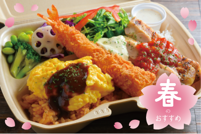 ふわとろオムレツ、トマトライスにエビフライとグリルチキン。大人のお子様ランチ気分が楽しめる、満足度No.1のプレミアム弁当です!